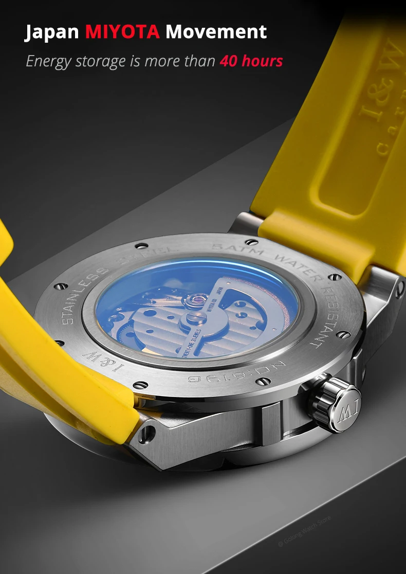IW Skeleton Automatic Watch Japan MIYOTA Movement Mechanical Watches for Men Sapphire Luminous 50m Waterproof Relogios Masculino
