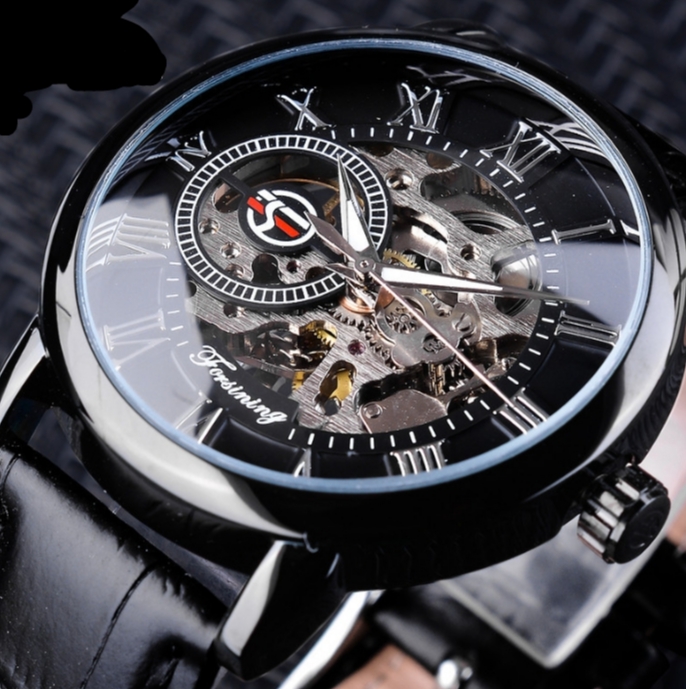 Mechanical Watch Men's Large Dial Hollowed Out Fully Automatic Movement Fashionable Business Luxury Multi Functional Watch