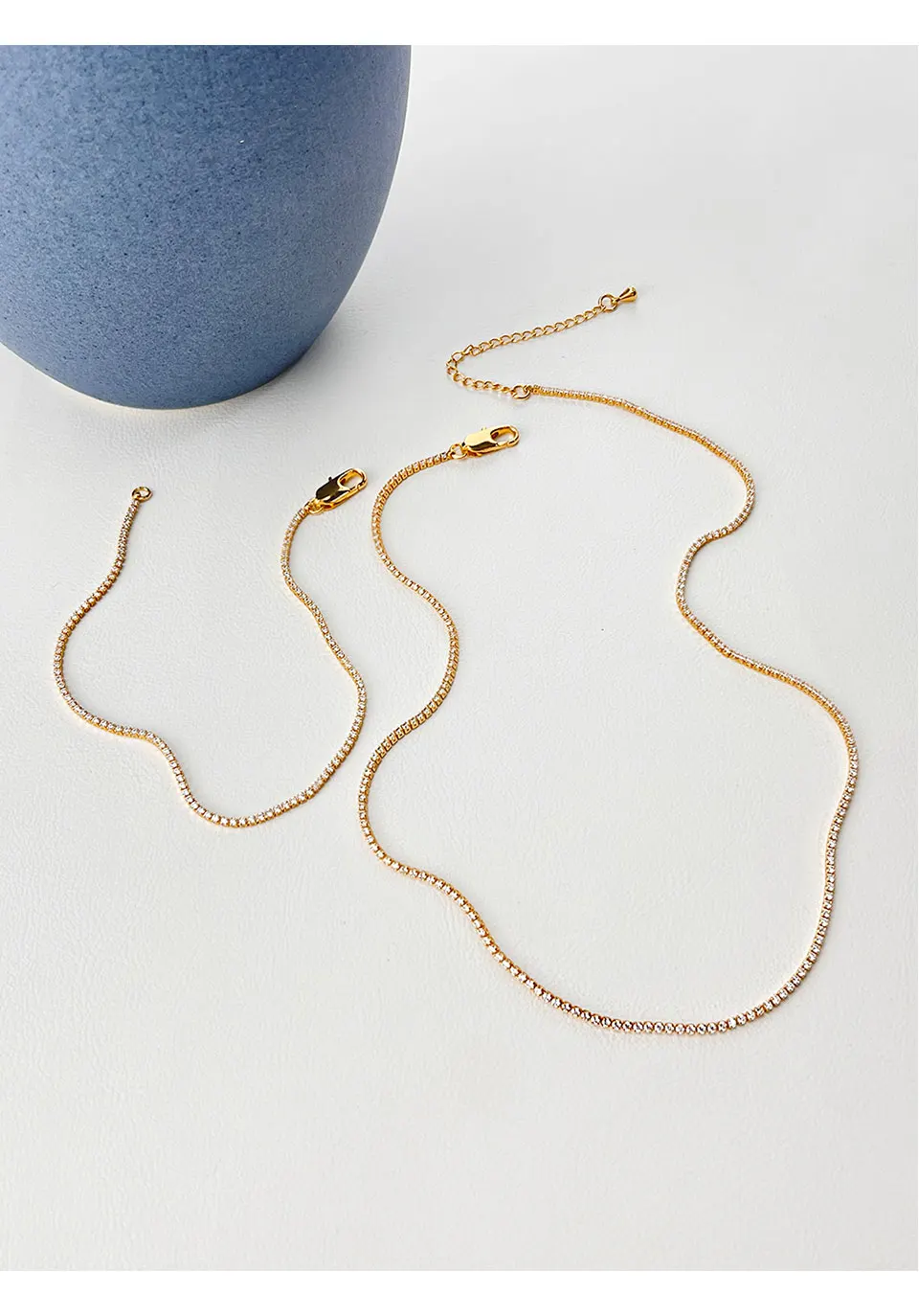 Feature: Dainty Bling Bling Tennis Thin Chain Choker Jewelry