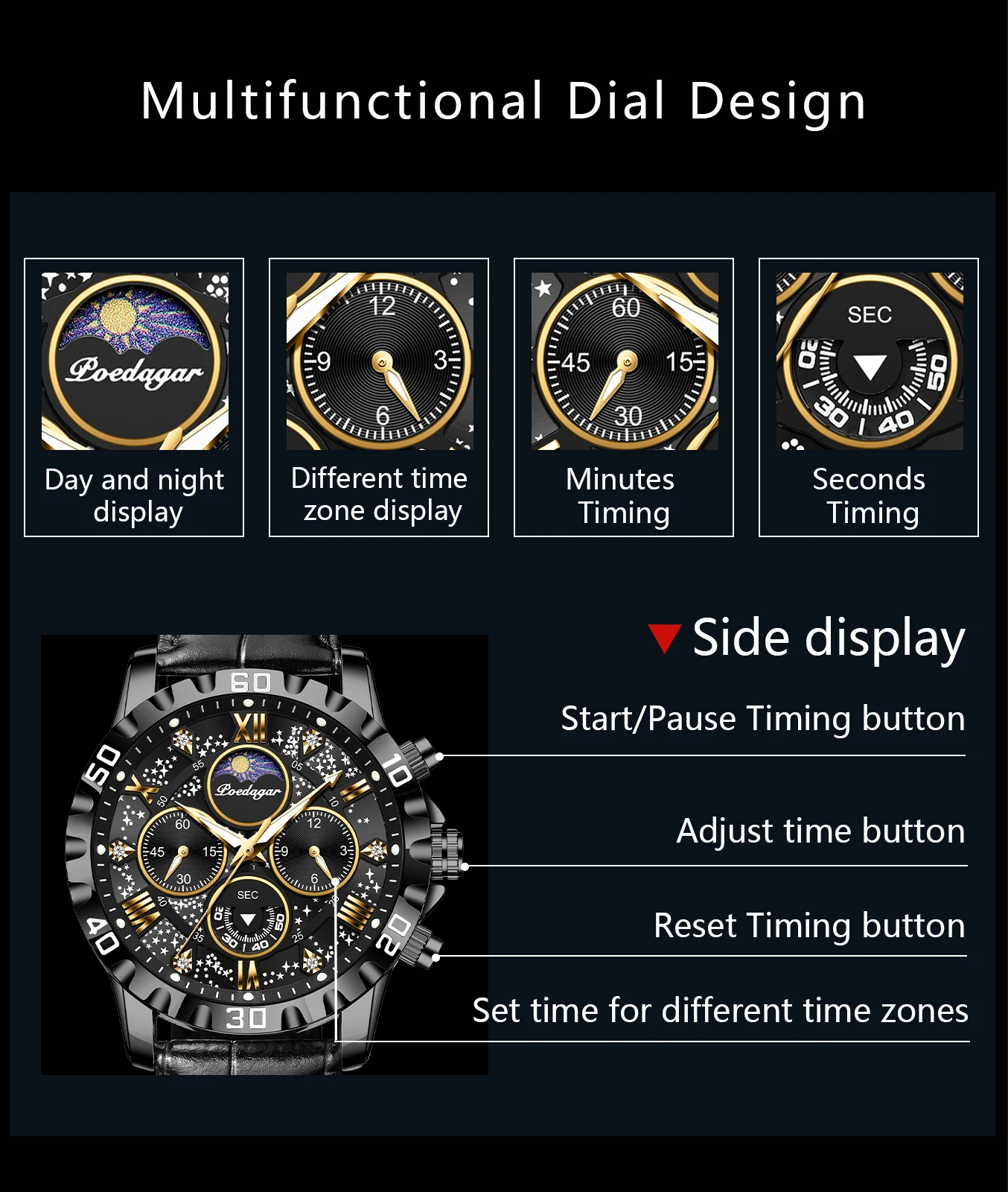 Feature: Luminous,Auto Date,Chronograph,Multiple Time Zone,Water-Resistance,swim,Luminous Hands