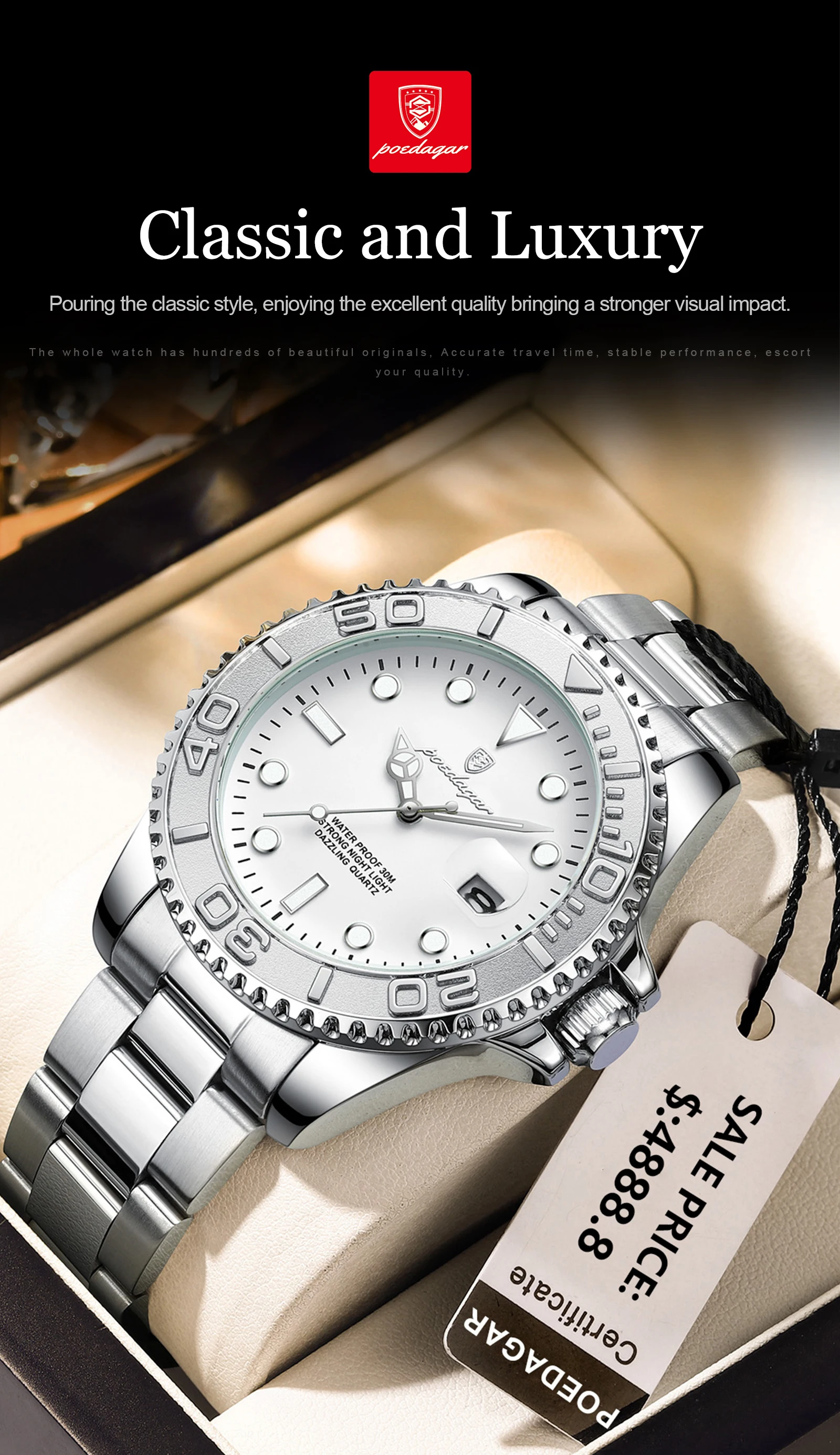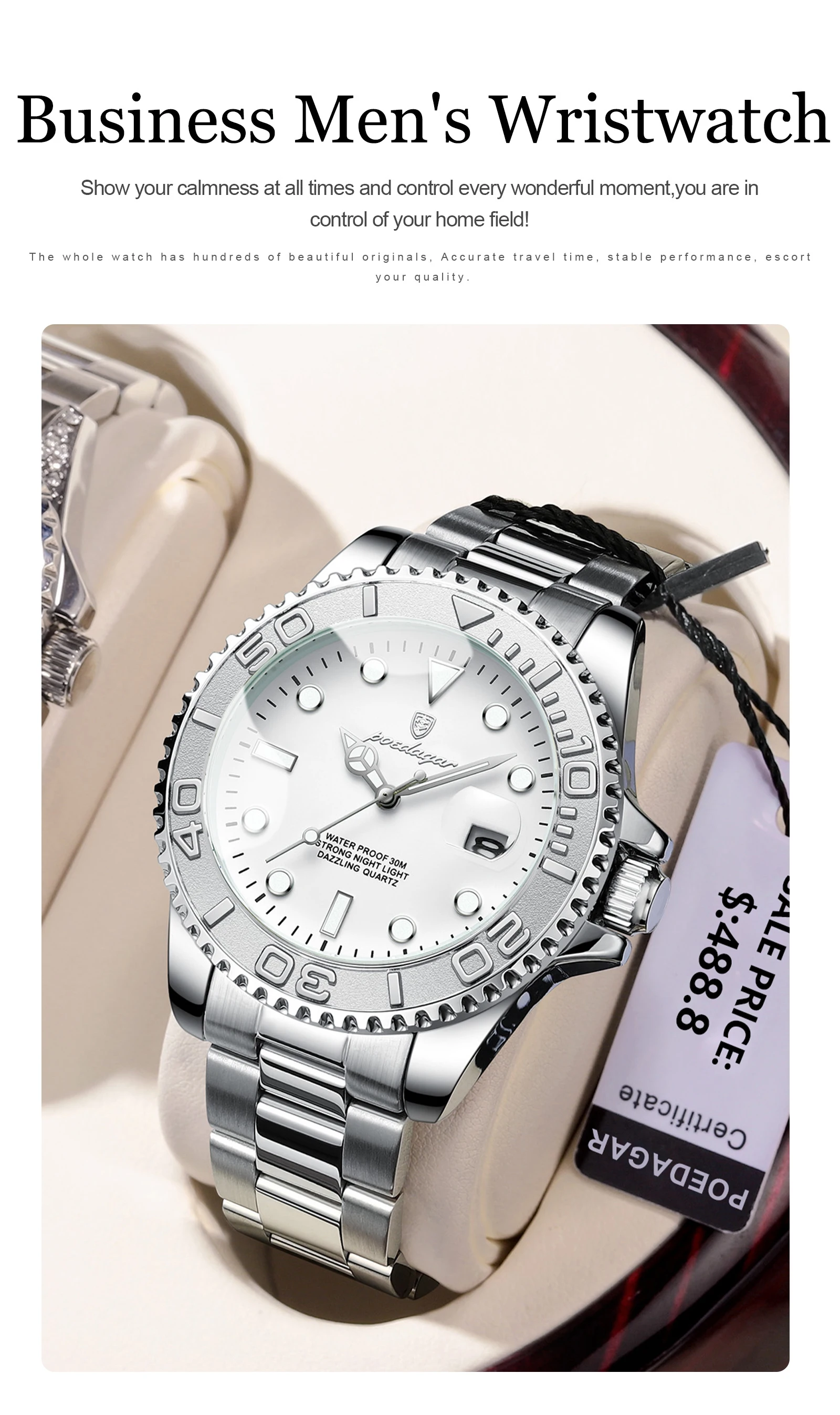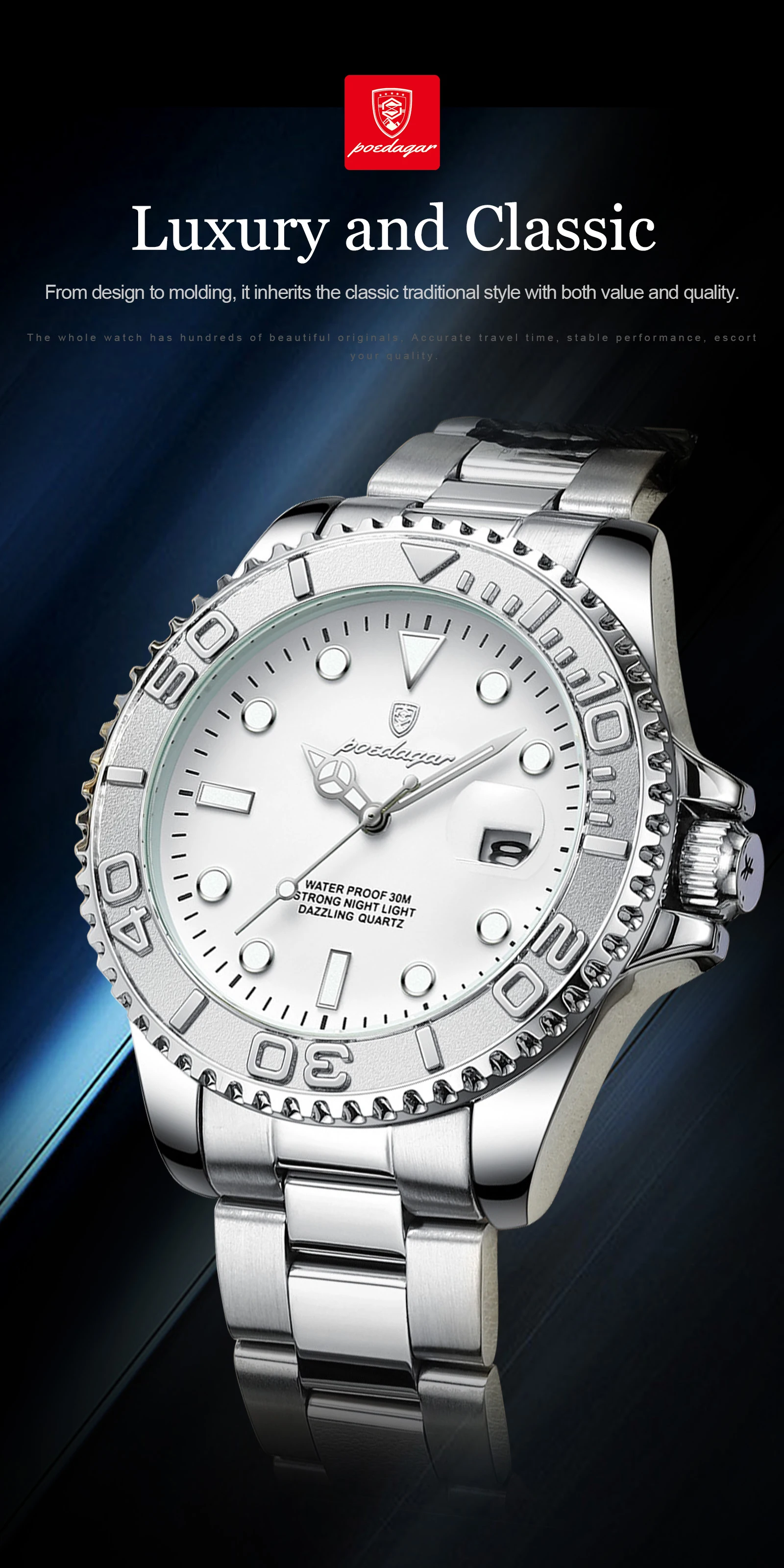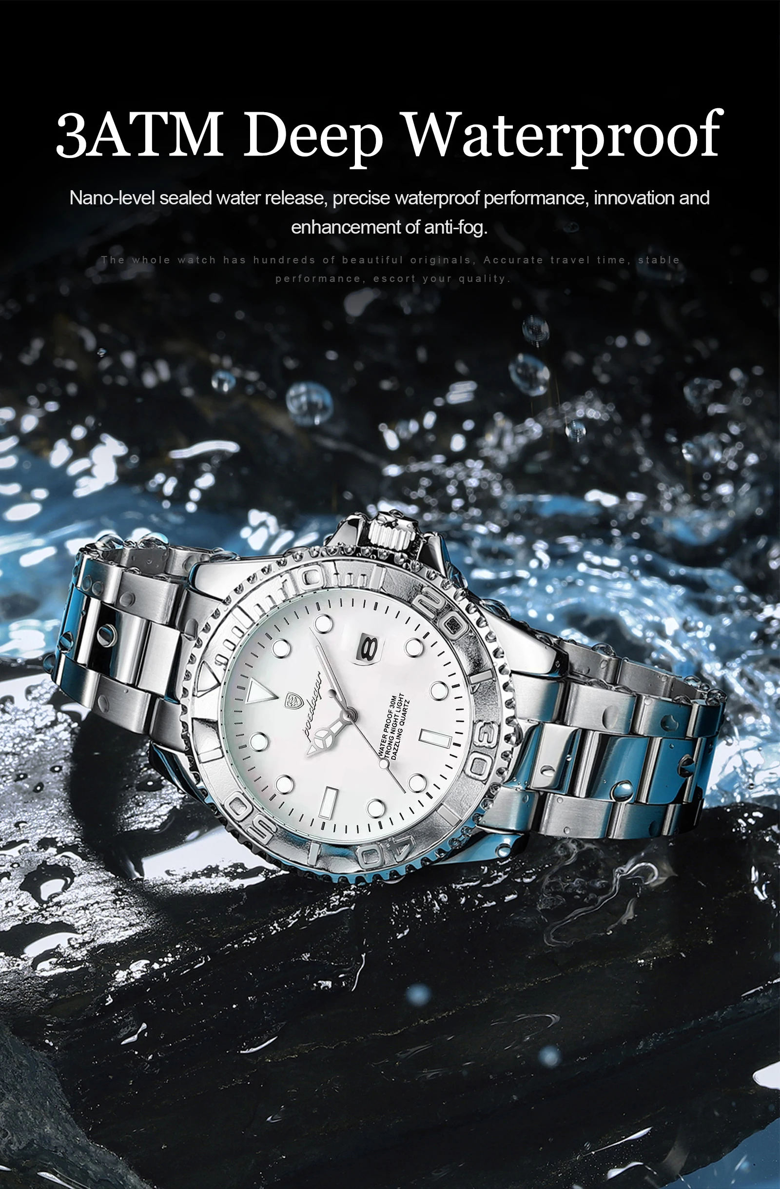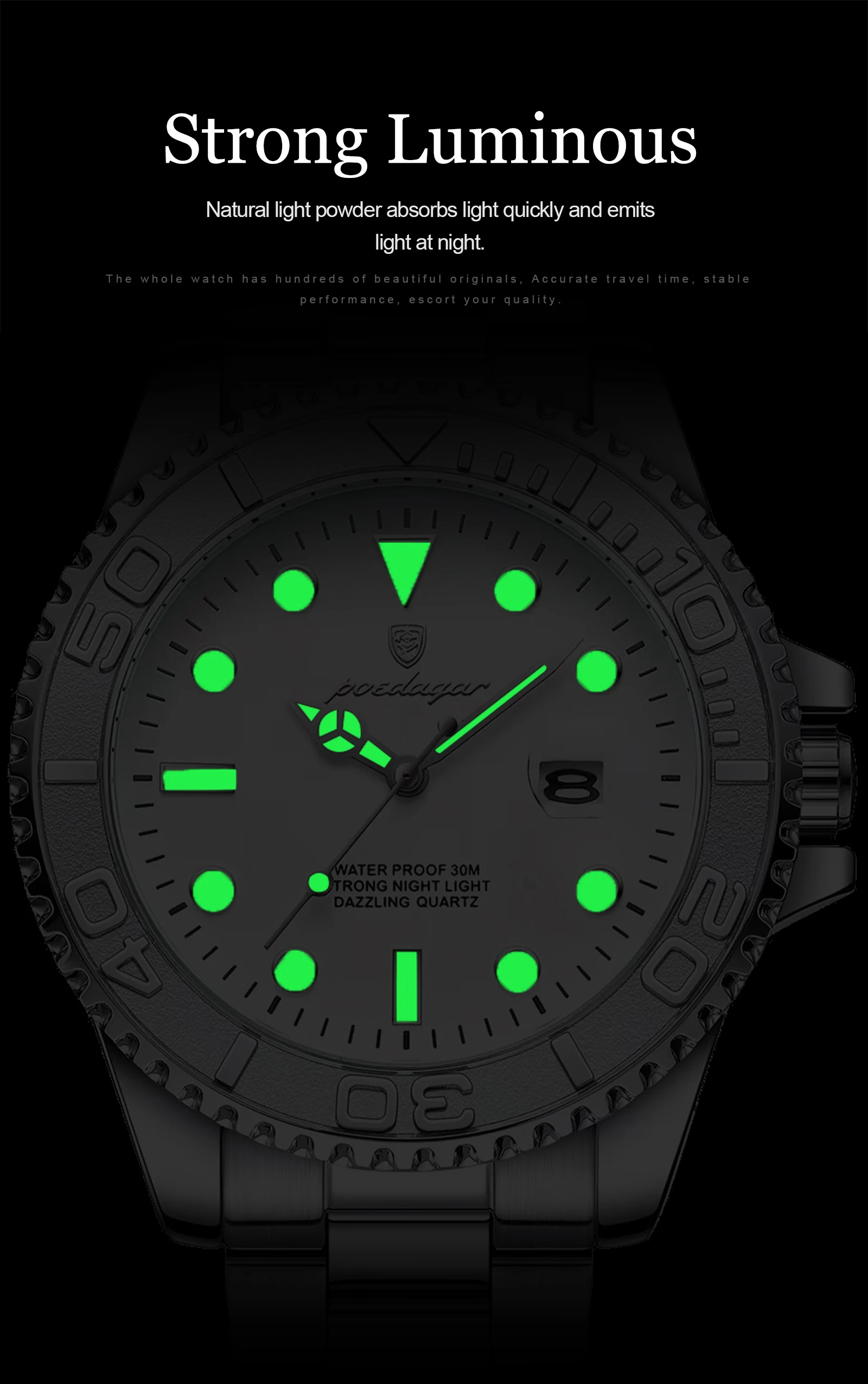Feature: Luminous,Auto Date,Water-Resistance,swim,Luminous Hands